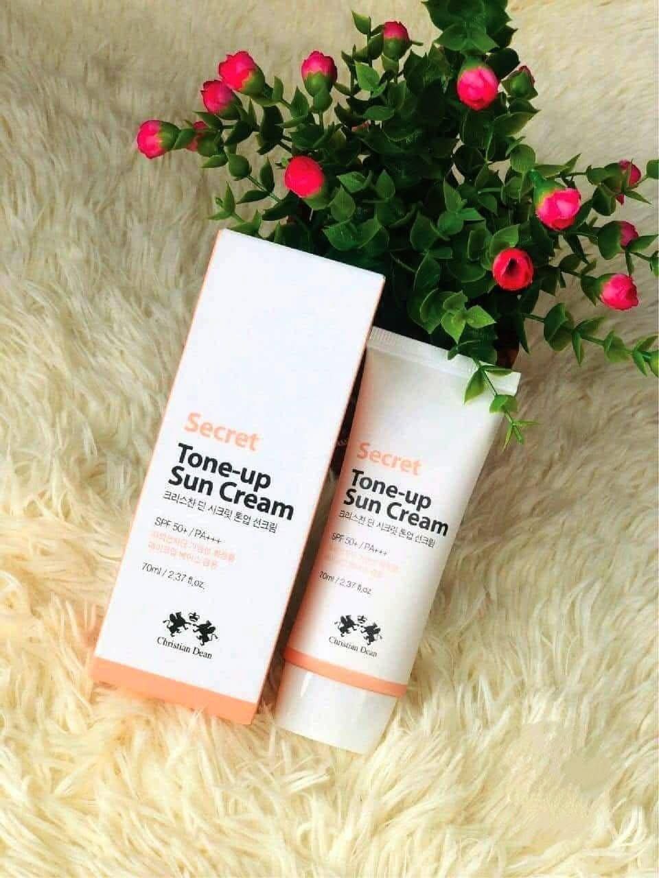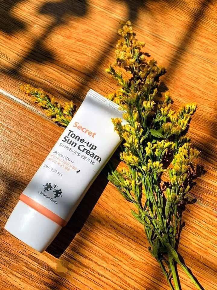 Secret Tone-Up Sun Cream is a dual-purpose day cream + sunscreen that protects your skin from sun damage while instantly enhancing your natural skin tone. It helps prevent sunburn and shields the skin from harmful UVA & UVB rays, making it ideal for daily outdoor use.